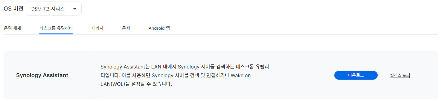 우선 PC용은 시놀로지 홈페이지에서 다운로드할 수 있는데요.