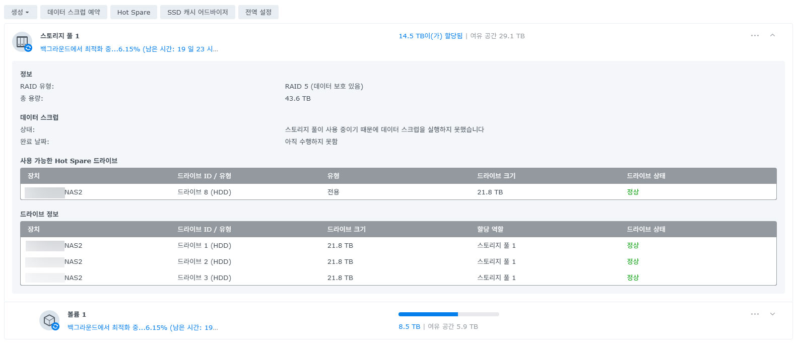 2025/12/21 시놀로지 NAS 업그레이드/마이그레이션(1), 하드웨어 구성