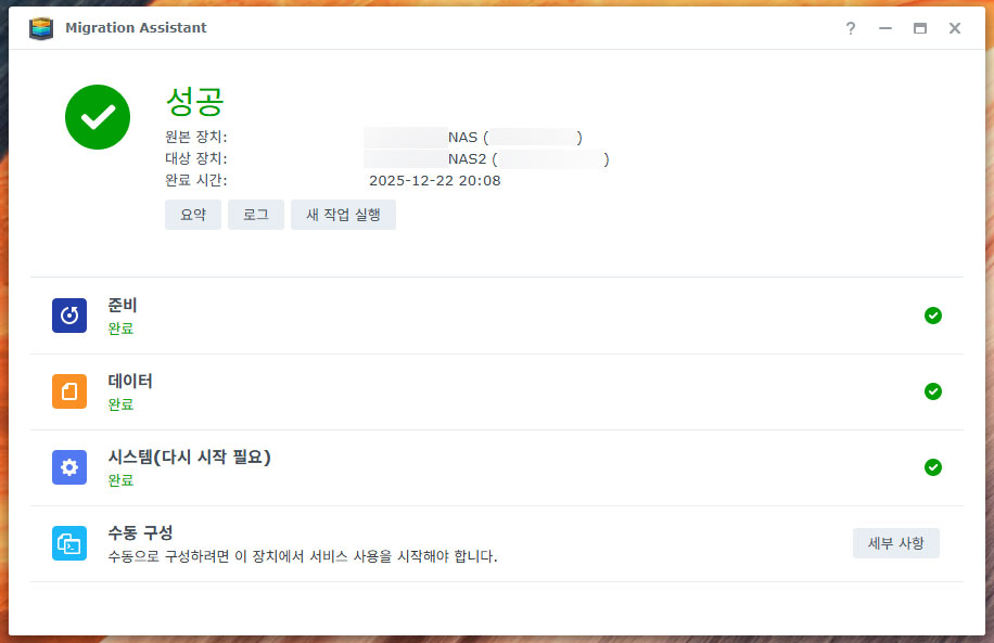 | 2025/12/21 시놀로지 NAS 업그레이드/마이그레이션(2), 기존 NAS의 설정 백업 (0) | 2025.12.21 |