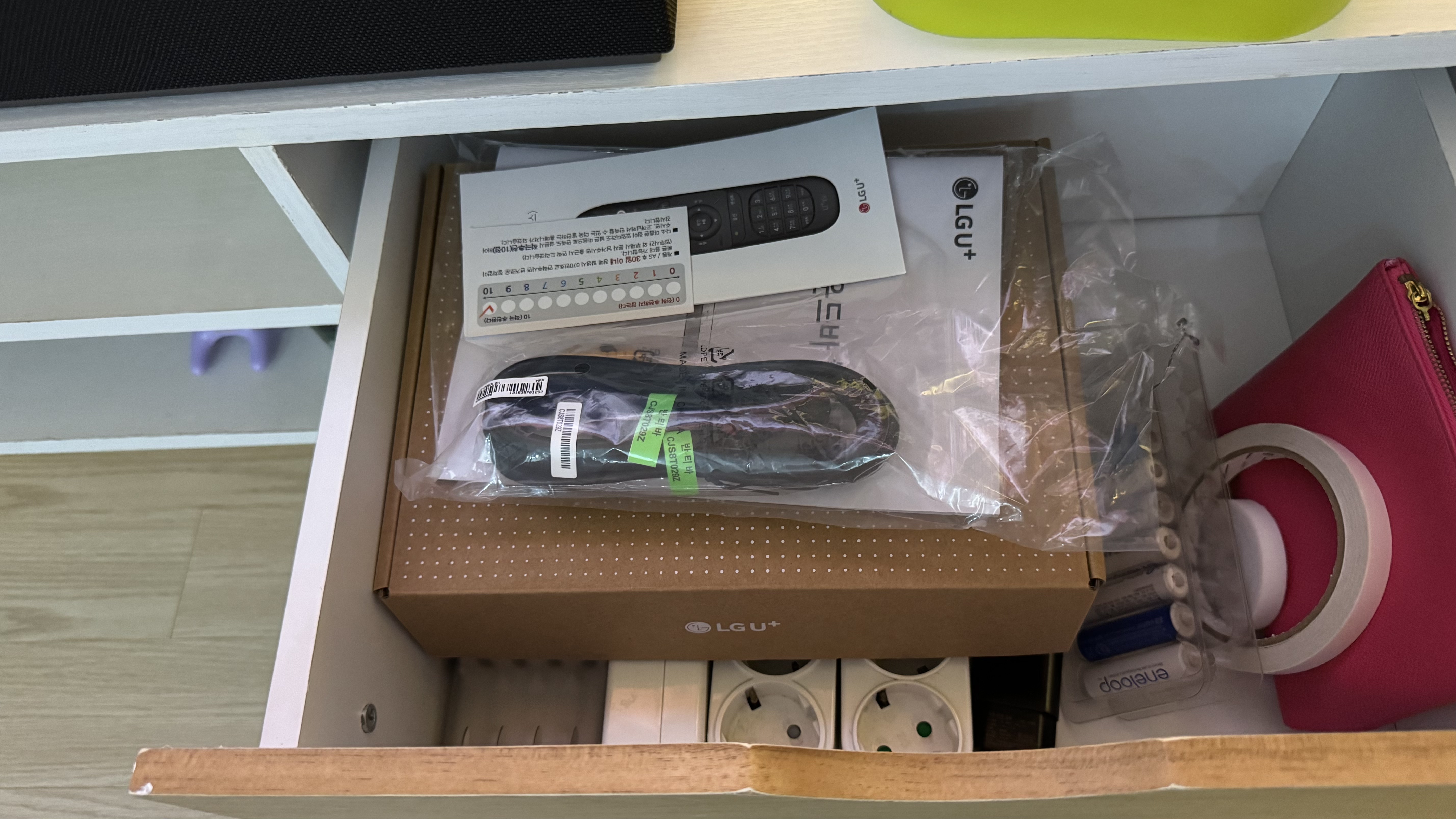 함께 제공되는 WIFI6 무선 공유기는 서랍장에 고이 모셔두려고 했는데... 결국은 다시 꺼내서 과거처럼 구성할 수밖에 없게 되었습니다. LGU+ 게이트웨이 -> 공유기(Super DMZ) -> 허브/무선 AP -> PC, 맥, 스마트폰 등... 현관 단자함을 가볍게 만들고 싶은 제 소망은 당장은 이루어지기 힘든가 봅니다. 연결이 헐거워지지 않는 커플러를 꼭 찾아내고, 거실 랜포트를 다시 확인해야겠습니다.