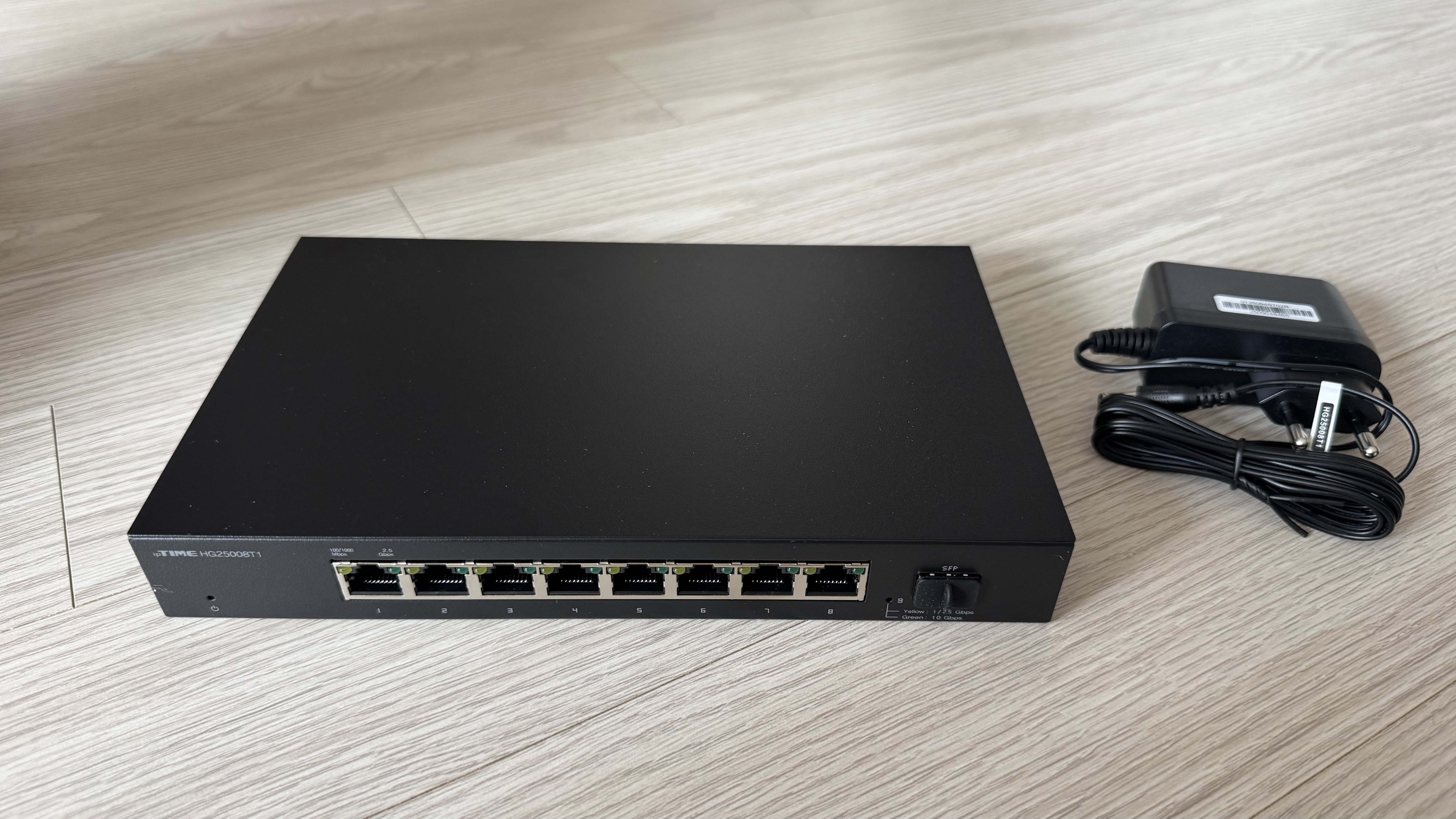 이전의 임시구성에서 단자함에 BE9400QCA를 두었는데, 이제는 그걸 빼고 허브를 넣으려고 합니다. 2.5 Gbps 지원에 8 포트 구성인 ipTIME의 H25008T1 스위칭 허브를 선택했습니다. BE9400QCA 제품은 메쉬 구성의 어려움과 부피의 문제가 있어서 자리를 내어 주었습니다.