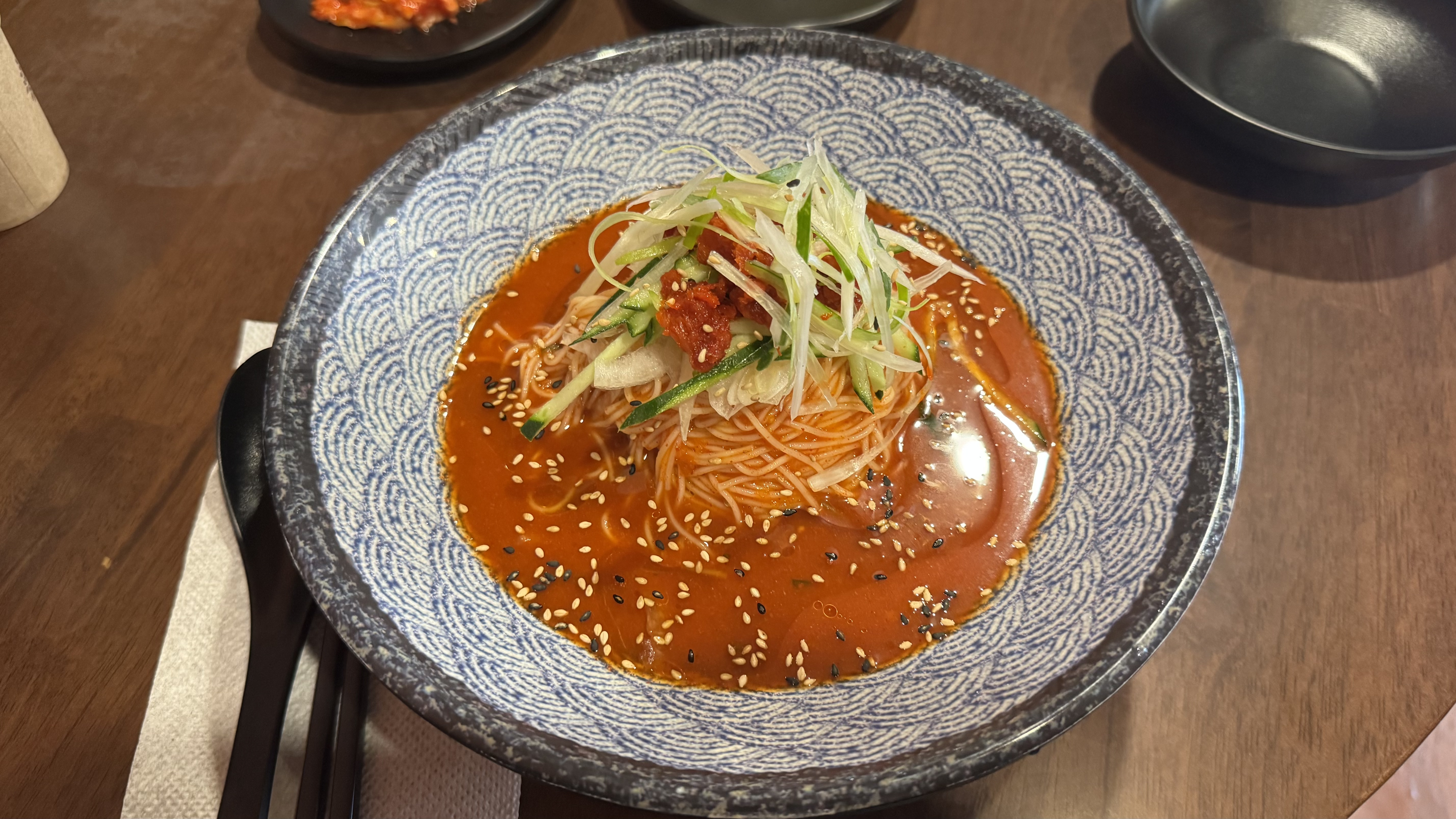 제가 주문한 비빔국수입니다. 살짝 맵고, 새콤한 맛입니다. 거기에 기름의 고소한 맛이 더해져 있습니다. 저는 음식이 단 것을 좋아하지 않는 터라, 이런 비빔국수/면을 먹을 때마다 항상 아쉽습니다. 달지 않았으면 정말 좋을 텐데. 그래도 충분히 맛있습니다. 가격은 요즘 물가로 치면 저렴하다고 할 수 있는데, 그럼에도 불구하고 성인 남성인 제게는 아쉬운 양이었습니다.