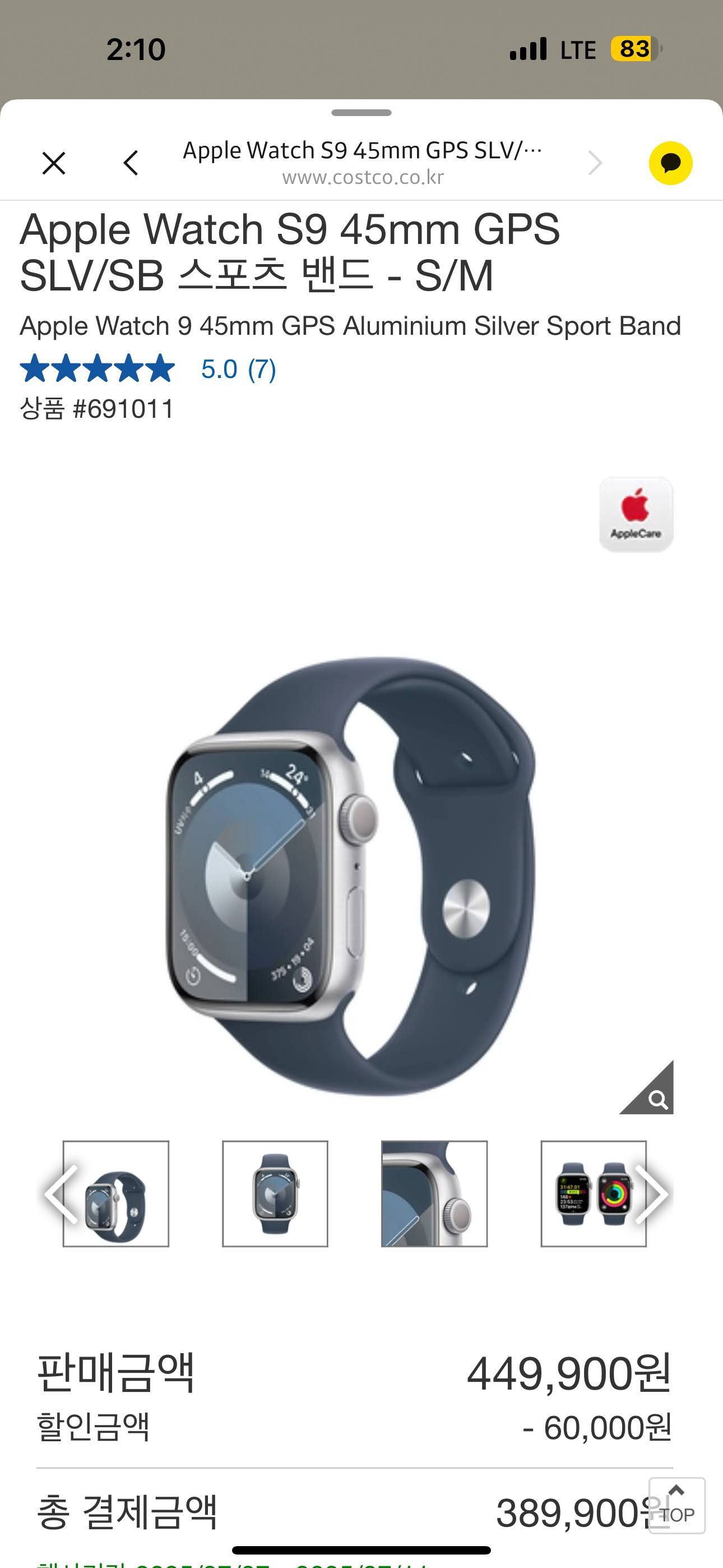 2025/07/11 애플 워치 시리즈 9를 구매했습니다.